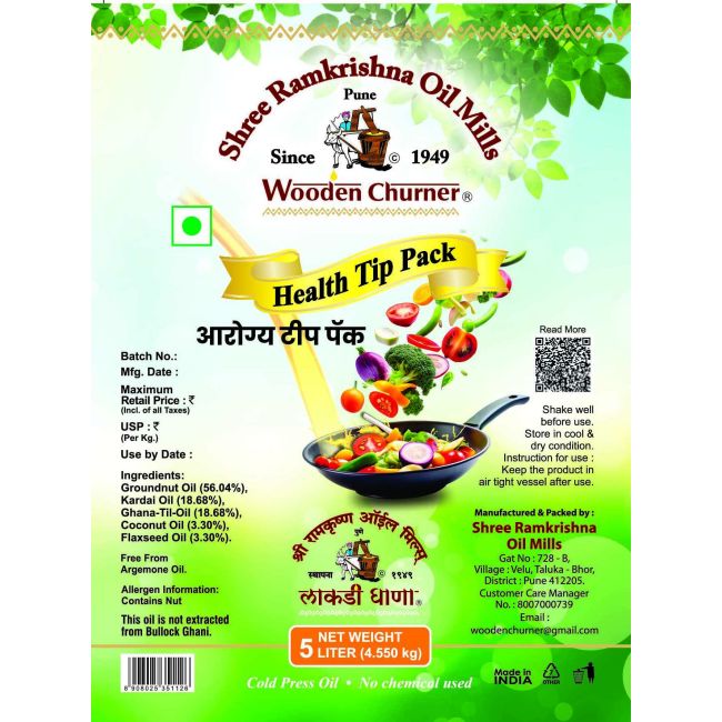 Unlock the secrets of traditional wellness with our Health Tip Pack, a thoughtfully crafted blend of five premium cold-pressed oils – Groundnut Oil, Safflower Oil, Coconut Oil, White Sesame Oil, and Flaxseed Oil. It is also called as Multi-Source Oil.